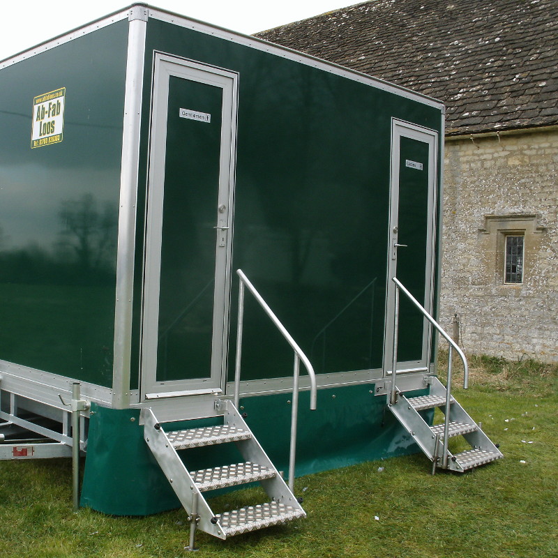 This is also a twin trailer (one ladies & one gent' s cubicle) but slightly larger than the garden party twin it is ideal for gatherings of 100 people over an 8 hour period.